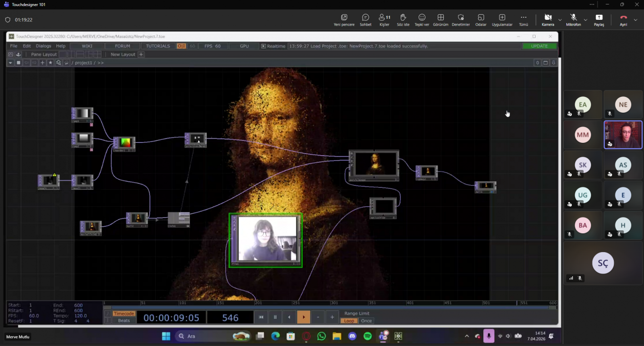 Gerçek zamanlı etkileşim tasarımı alanında öne çıkan TouchDesigner programının kullanım alanları ve uygulama örneklerinin paylaşıldığı etkinlikte, öğrenciler yaratıcı teknolojilerle tanışma ve uygulamalı deneyim kazanma fırsatı buldu.