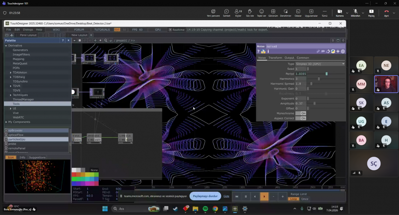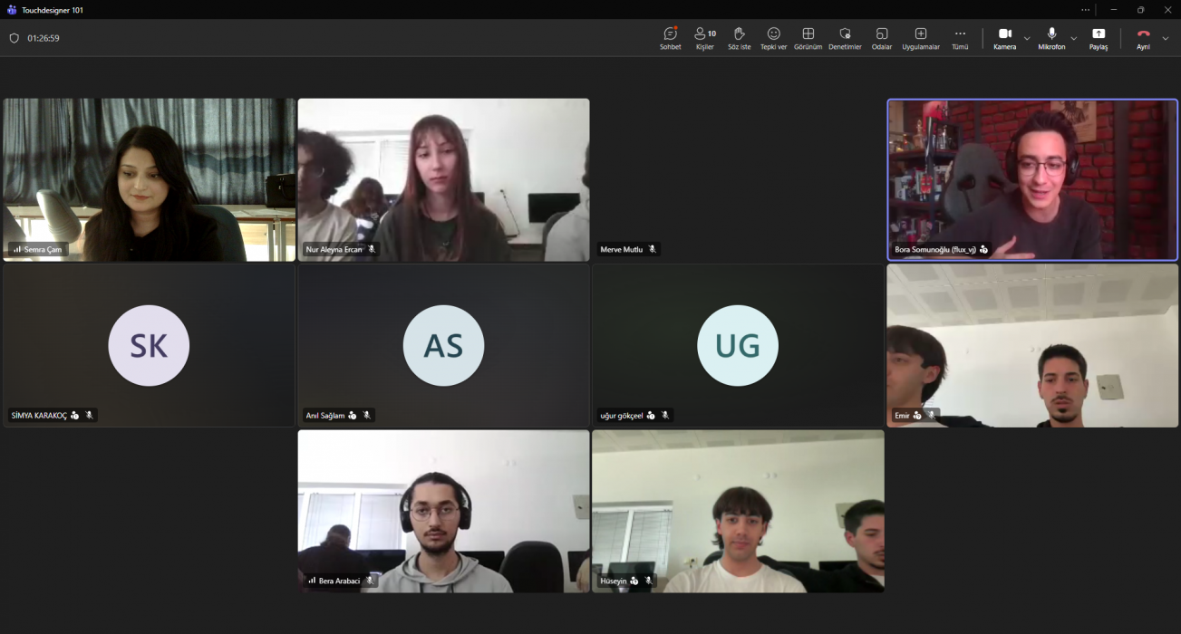 Dinamik Simülasyonlar dersi kapsamında, 7 Nisan 2026 tarihinde 328 No’lu Atölye’de Bora Somunoğlu ile “TouchDesigner 101” başlıklı online workshop gerçekleştirildi.