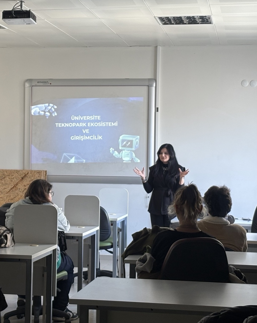 Grafik Tasarım Bölümü Dr. Öğr. Üyesi Ezgi Şen Atiker tarafından yürütülen Girişimcilik dersi kapsamında Çanakkale Teknopark Kurumsal İletişim Koordinatörü Dr. Öğr. Üyesi Semra Çam Sönmez, teknopark ekosistemi ve girişimcilik süreçleri hakkında bilgilendirici bir söyleşi gerçekleştirdi. Söyleşide, teknoparkların yaratıcı endüstriler için sunduğu fırsatlar ve özellikle grafik tasarım, animasyon, dijital içerik üretimi gibi alanlarda geliştirilebilecek girişim örnekleri ve modelleri ele alındı. Öğrencilere; şirketleşme süreçleri, sağlanan vergi avantajları, proje destek mekanizmaları ve kuluçka imkanları hakkında kapsamlı bilgiler aktarıldı.